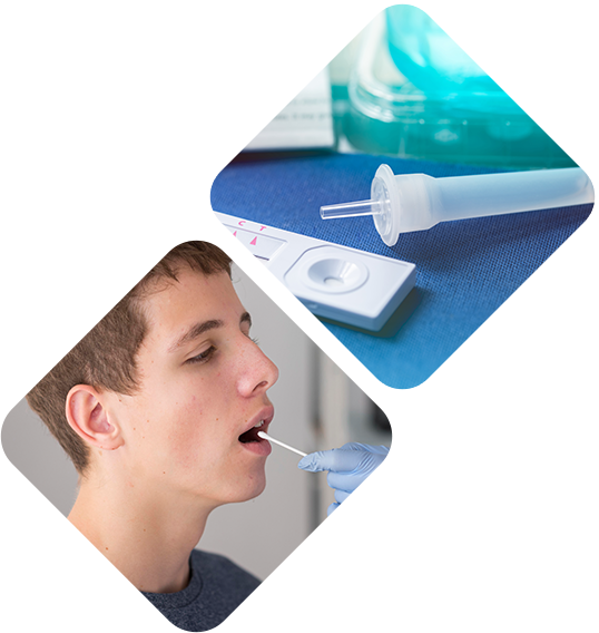 At-Home Test At-Home saliva sample collection using swab provided in the kit.